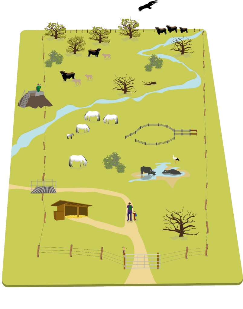 Wilde Weiden sind extensive ganzjährige Standweiden mit großen Weidetieren (robusten Rassen von Rindern, Wasserbüffeln und Pferden).