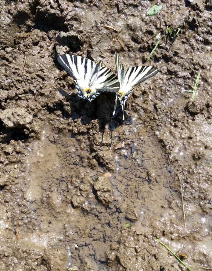 Wasserbüffel schaffen Kleingewässer zum Suhlen.